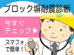 上の画像をクイックされますと5分でわかる「ブロック塀耐震診断」ツールが開始されます。